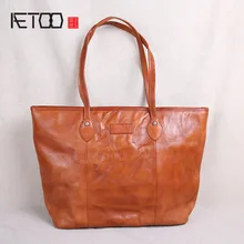 Offer Description of AETOO Leather handbag big bag first layer cowhide simple tote bag soft leather retro art large capacity shoulder shopping bag