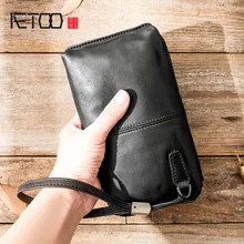 .Images for AETOO Leather handbag men's soft leather retro casual long wallet men's first layer leather zipper wallet phone bag female tide