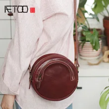 .Images for AETOO Women's bag, summer small fresh cowhide round advanced sense bag, crossbody bag, new leather retro small round bag